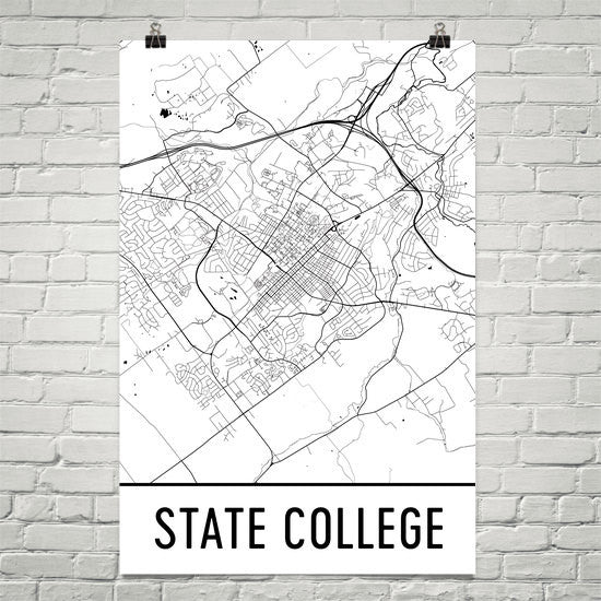 State College PA Street Map Poster Wall Print by Modern Map Art
